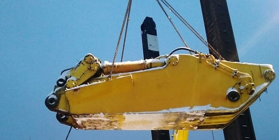 В торговом порту Мурманска заменили рукоять и ковш на спецсудне